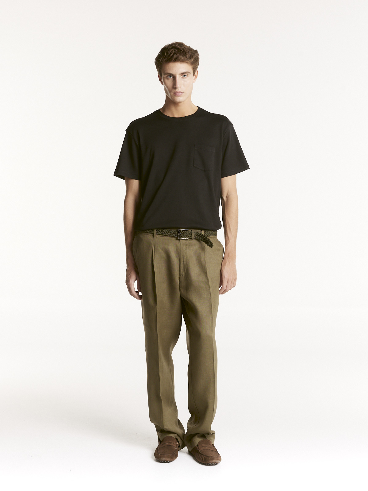 Confeccionado en lino 100% italiano, este pantalón combina elegancia y comodidad con su elástico lateral y dos pinzas que define su silueta.