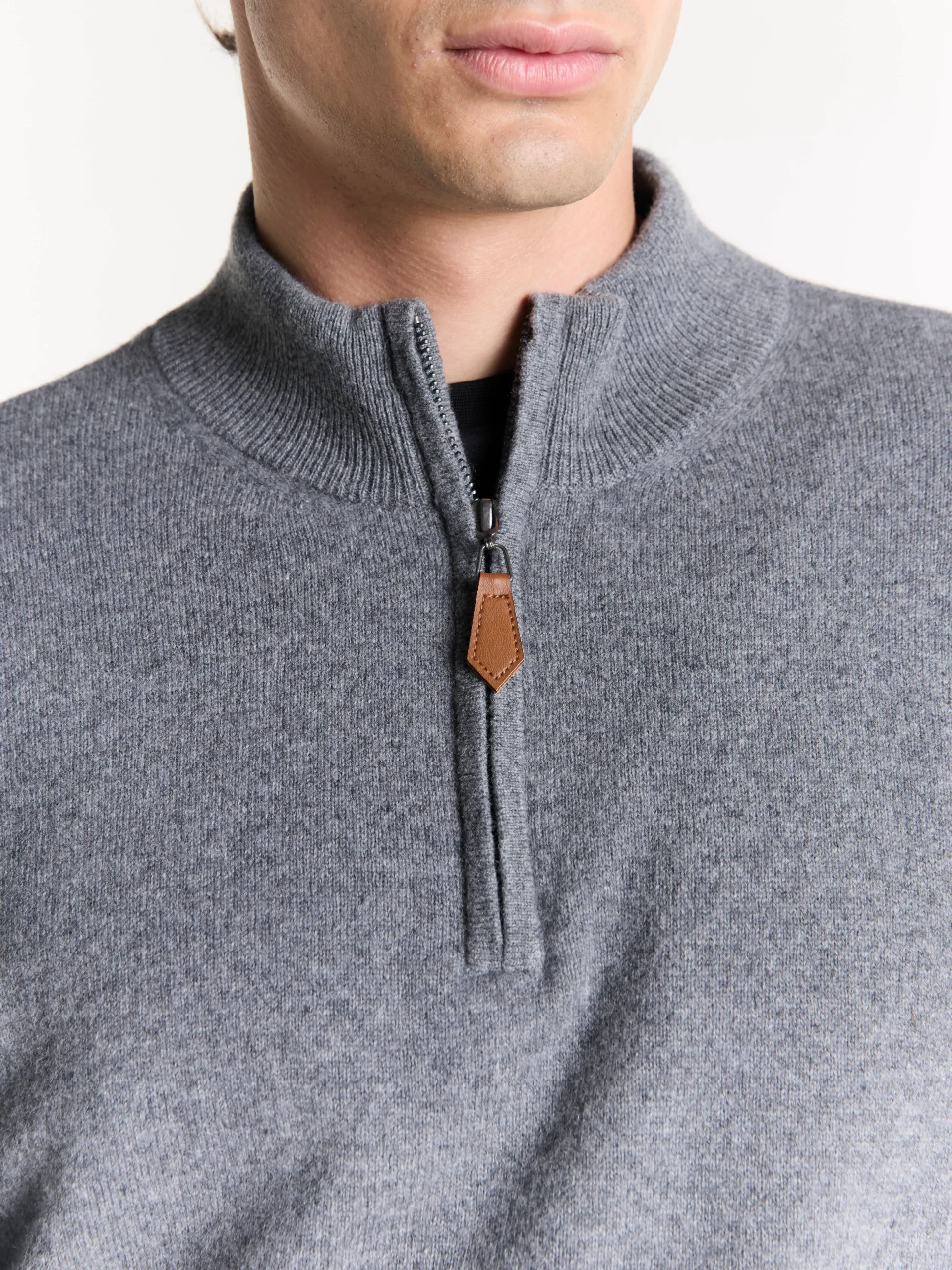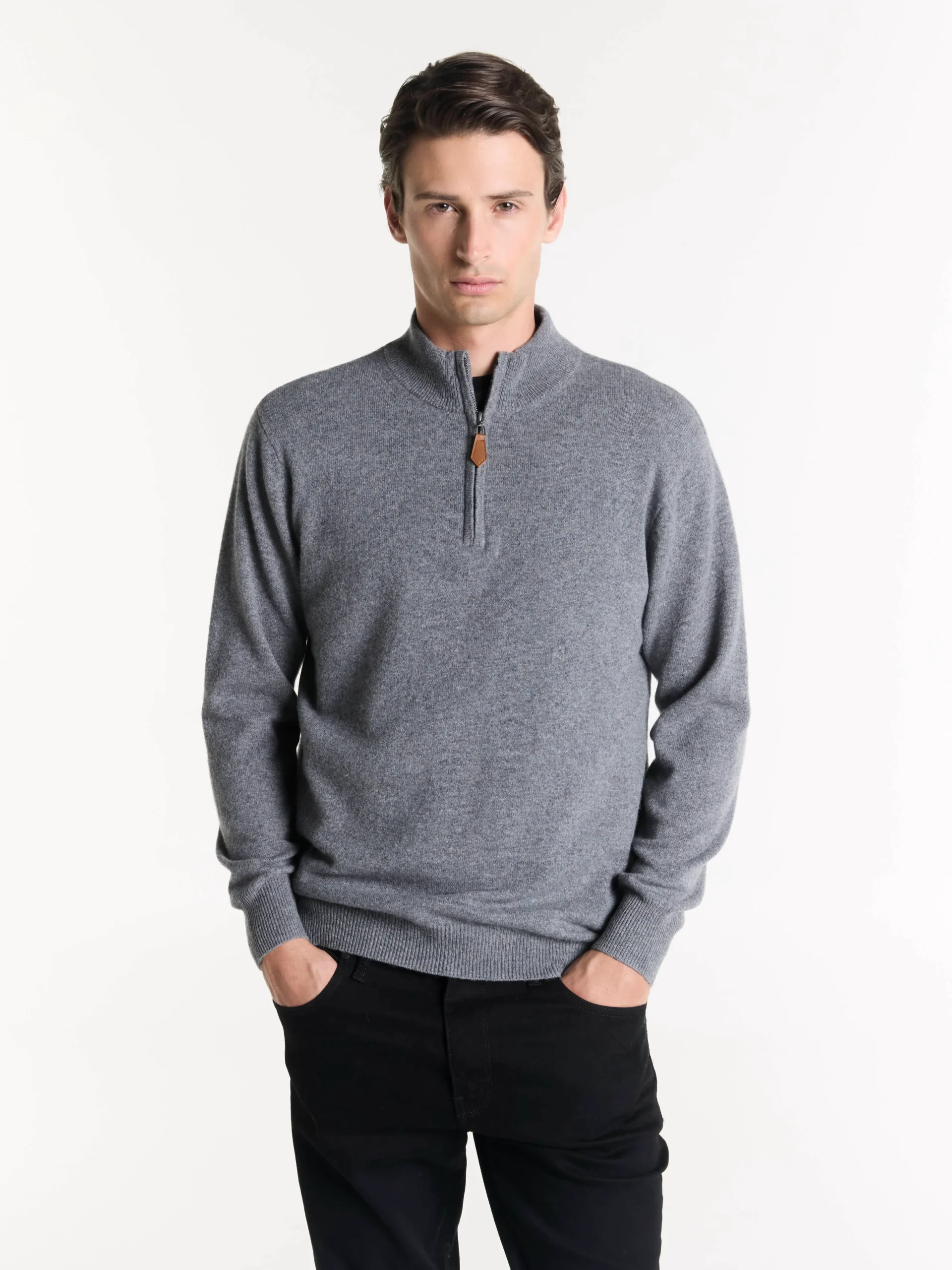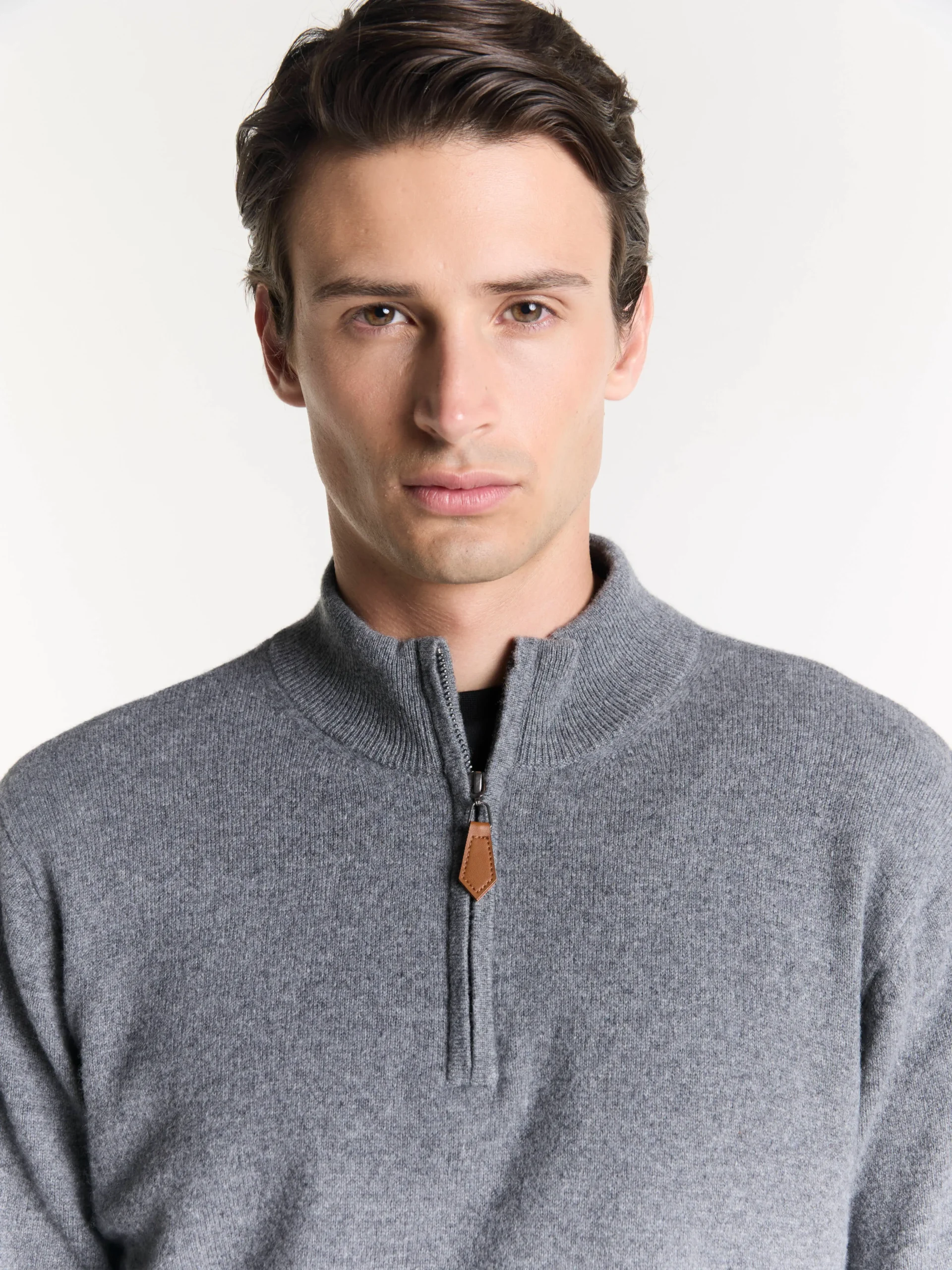Sweater italiano de medio cierre, confeccionado en 100% cashmere de la más alta calidad. Suave, ligero y extraordinariamente cálido, ofrece una sensación de lujo y confort inigualables. Perfecto para un estilo sofisticado y atemporal.