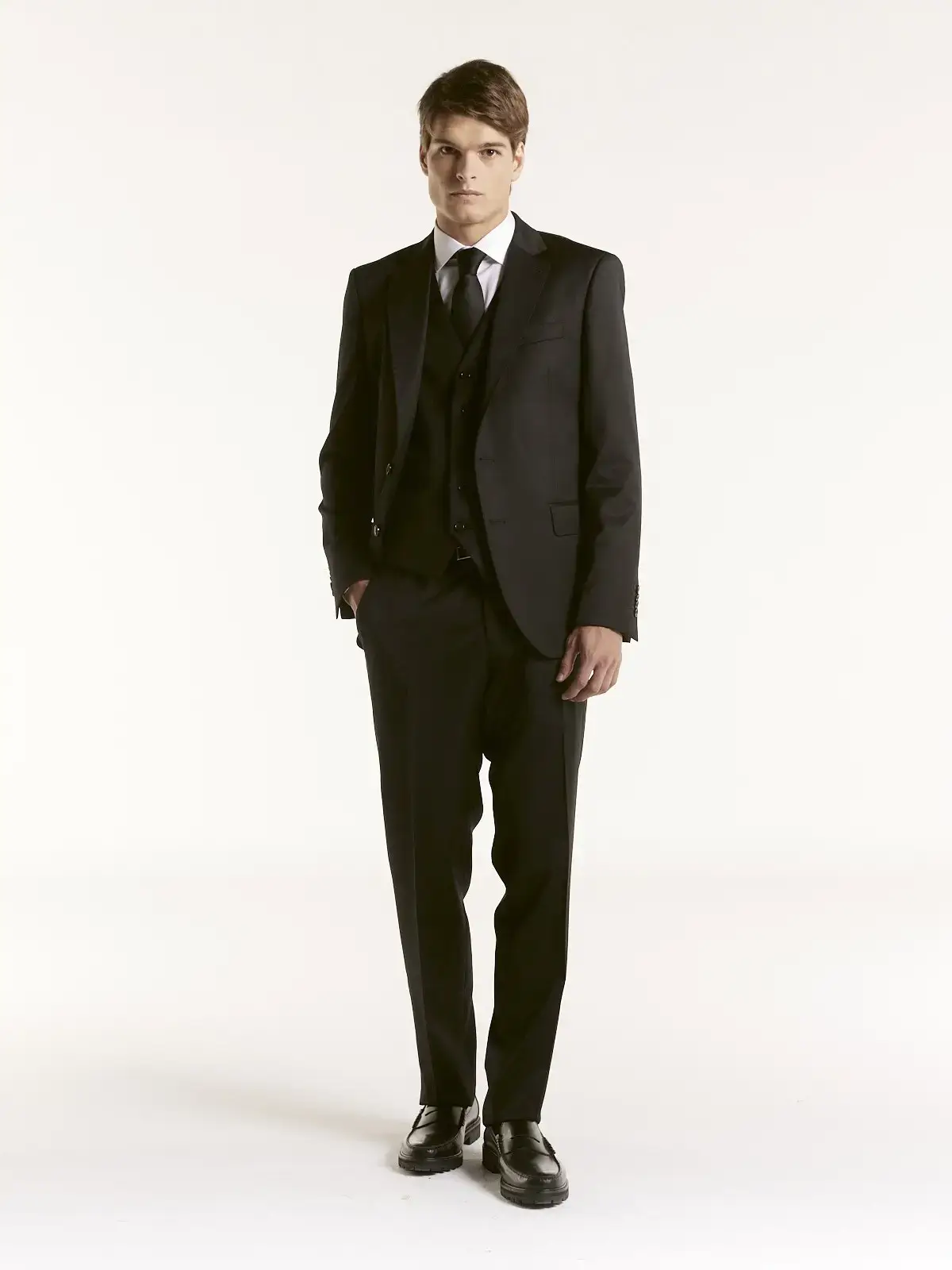 | Talles pantalón | Cintura | Cadera | Tiro delantero | Largo total | Talles saco | Hombro a hombro | Ancho pecho | Largo manga | Largo total |