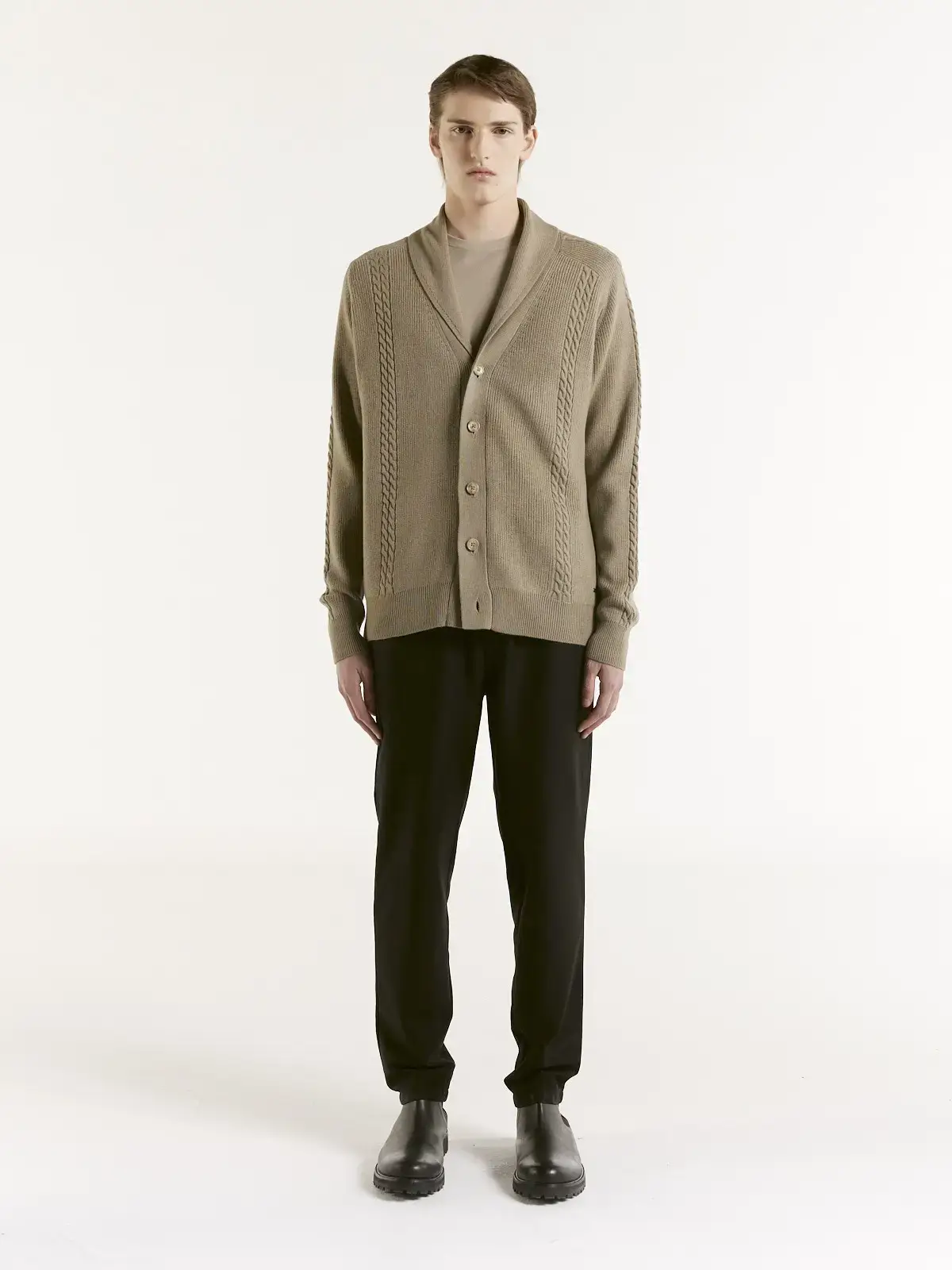 El cárdigan de 100% lana, adornado con detalles de trenzas simples en sus delanteros y mangas, es una pieza clásica y elegante que combina calidez y estilo. La lana proporciona una sensación de suavidad y confort, mientras que las trenzas simples añaden un toque de textura y sofisticación al diseño. Compuesto por 100% Lana