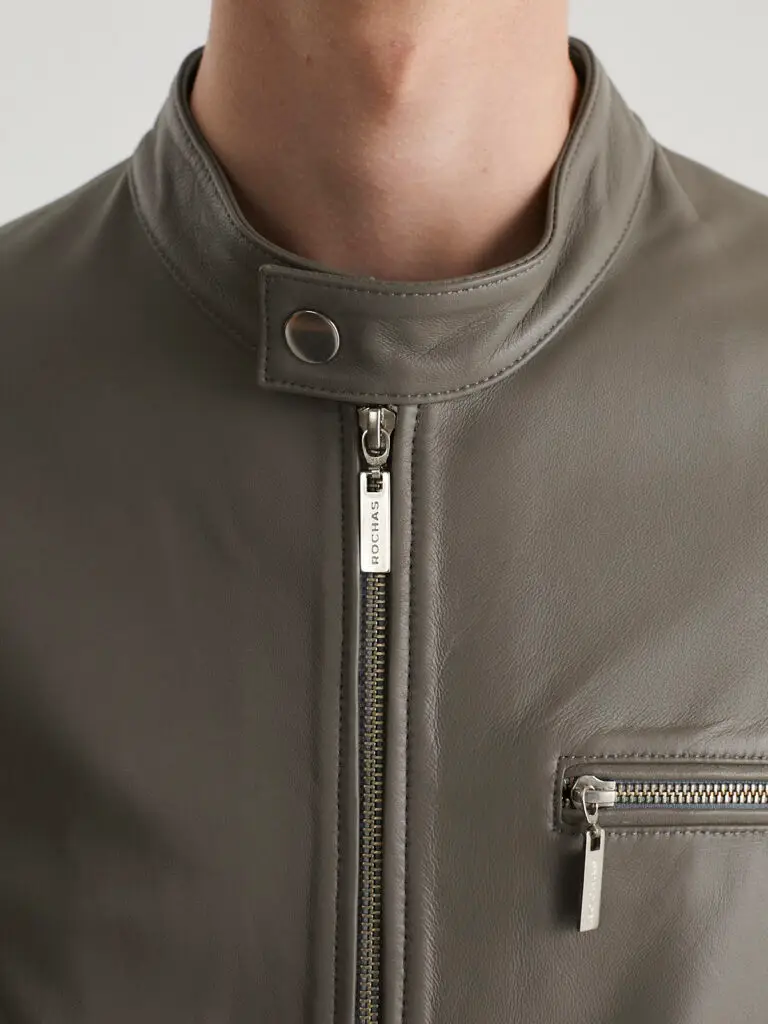 CAMPERA BOMBER CUERO OVEJA CON BROCHE