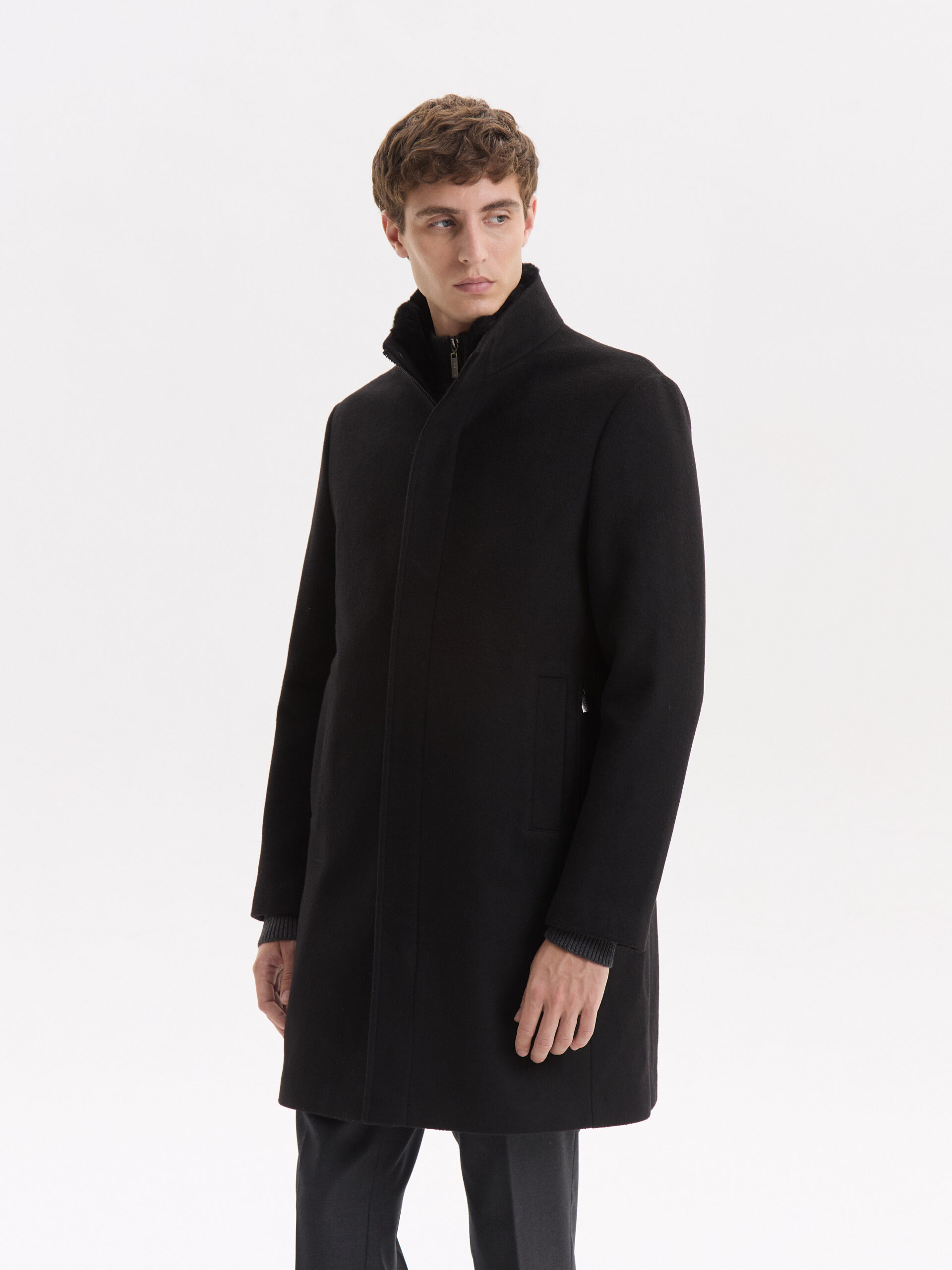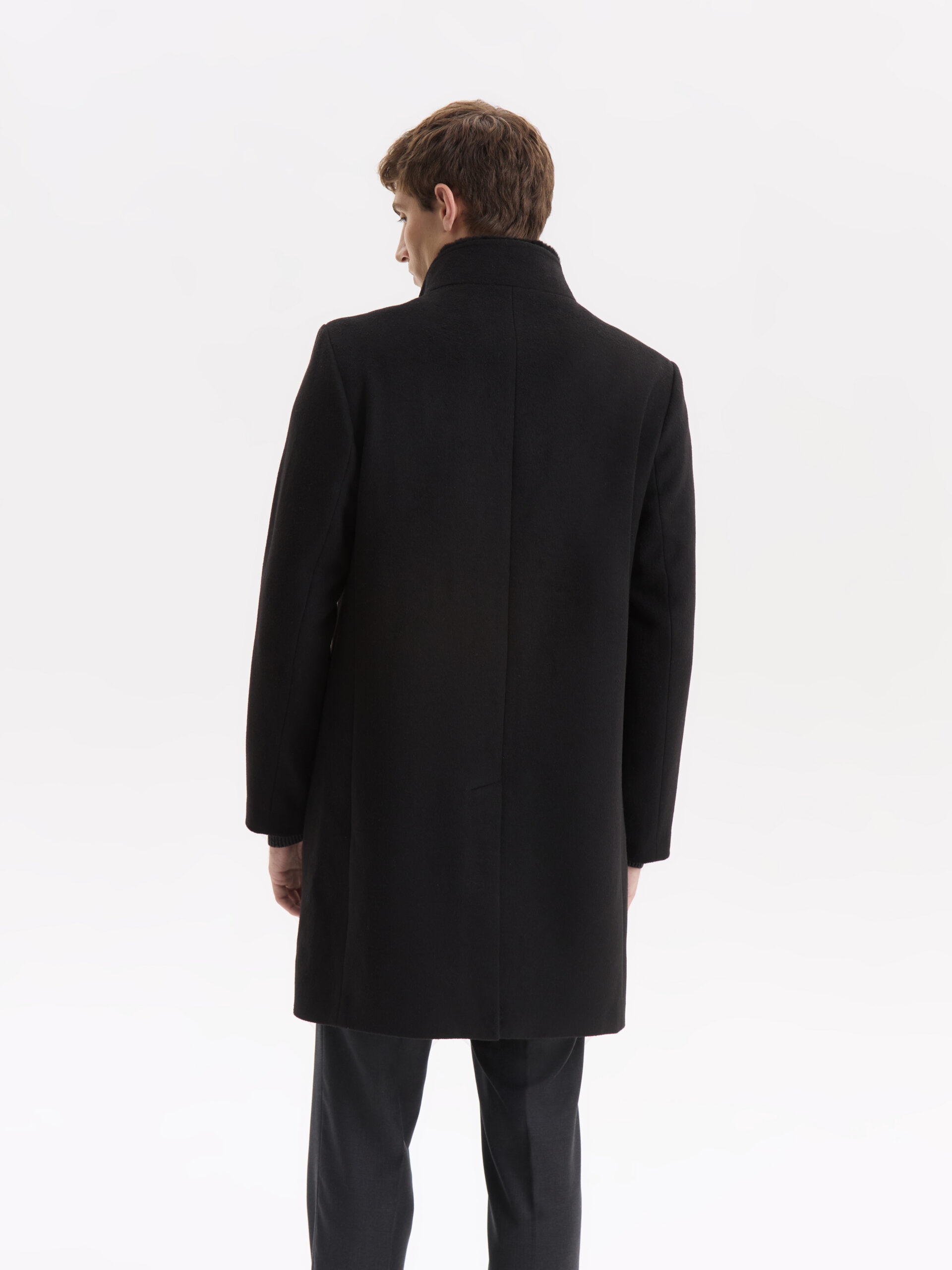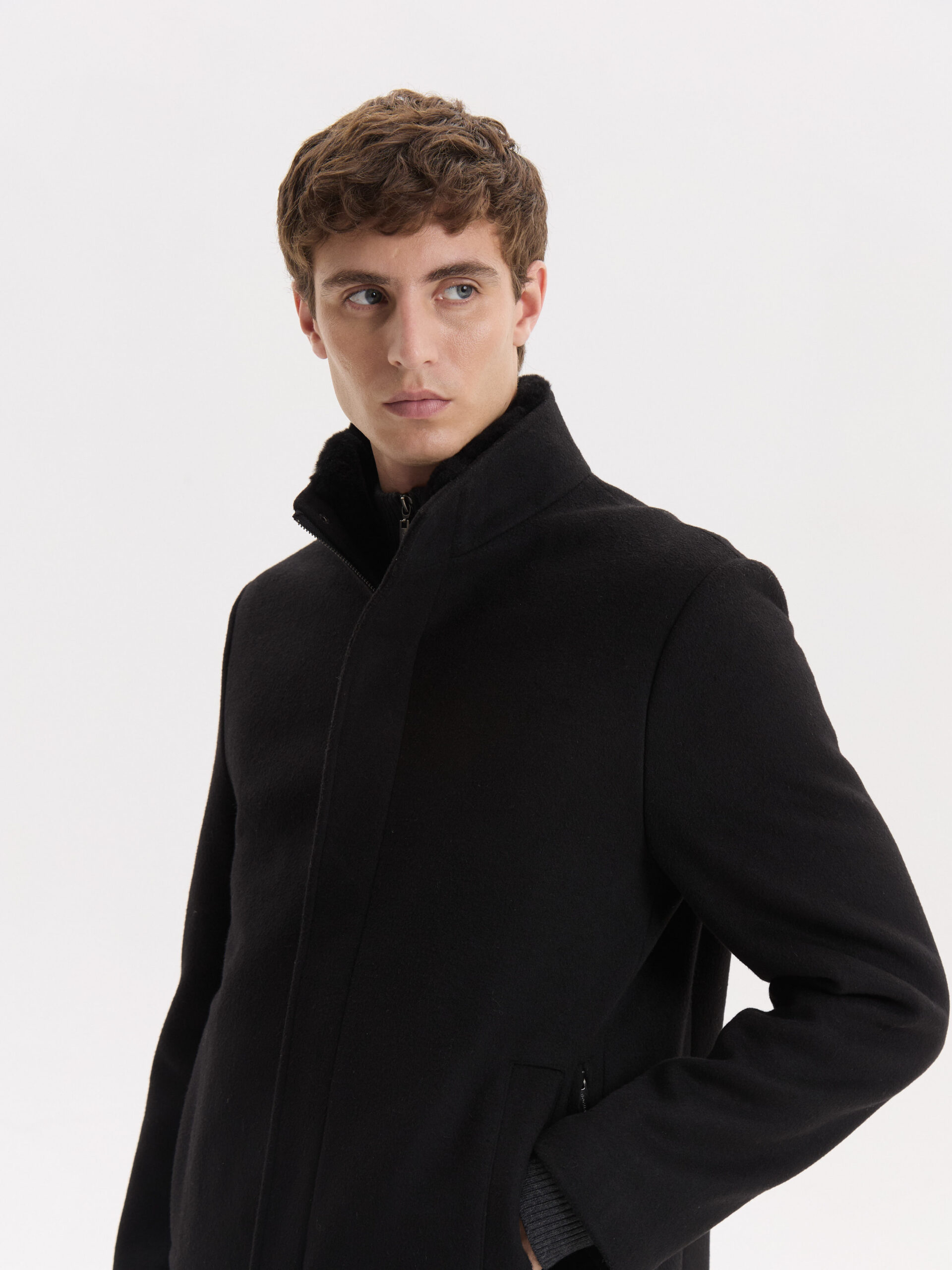 Sobretodo confeccionado en paño de lana y fibras seleccionadas de alta calidad que aportan estructura y durabilidad. Como detalle distintivo presenta el interior del cuello en efecto piel, una opcion cálida con un look refinado.