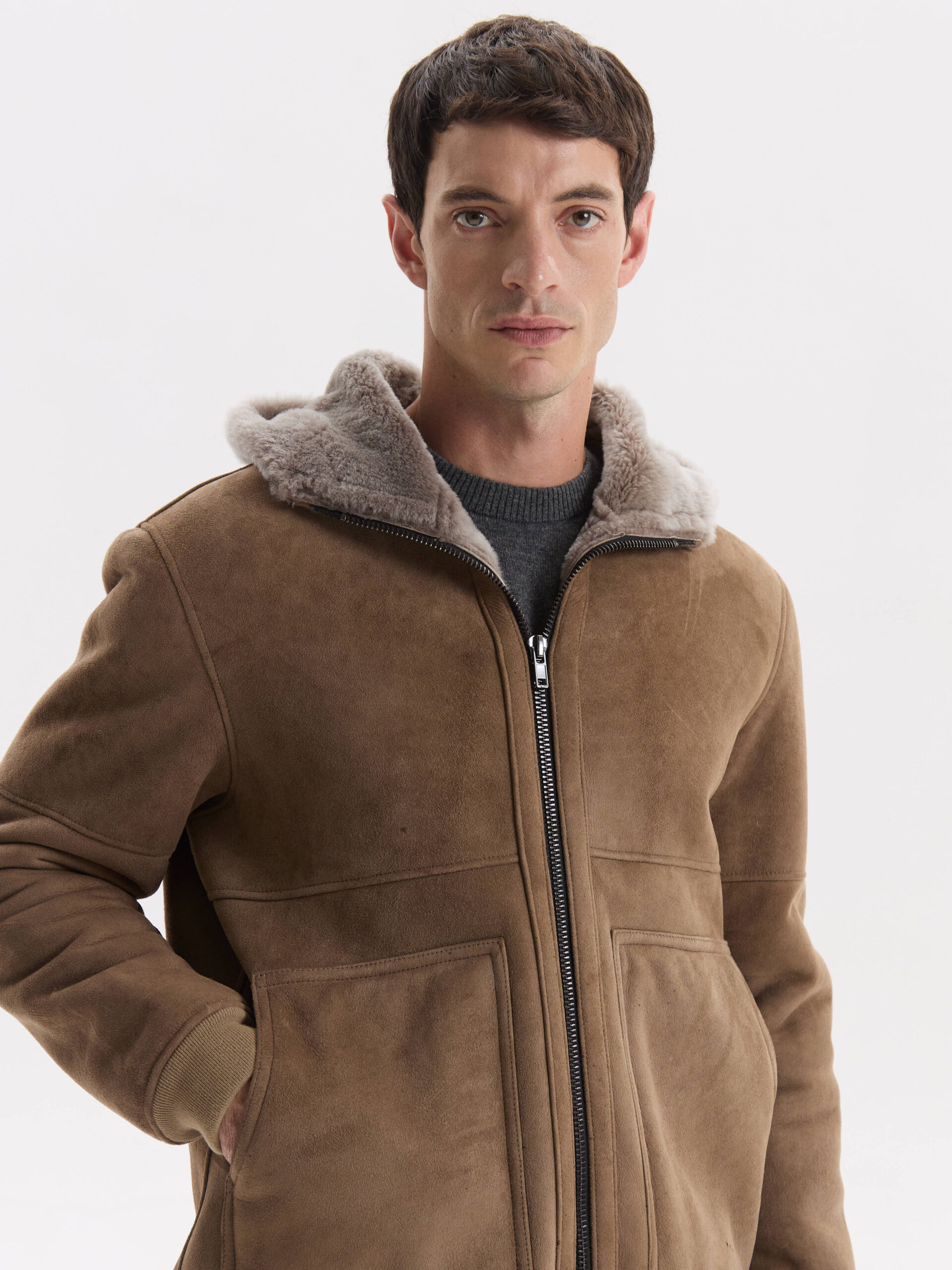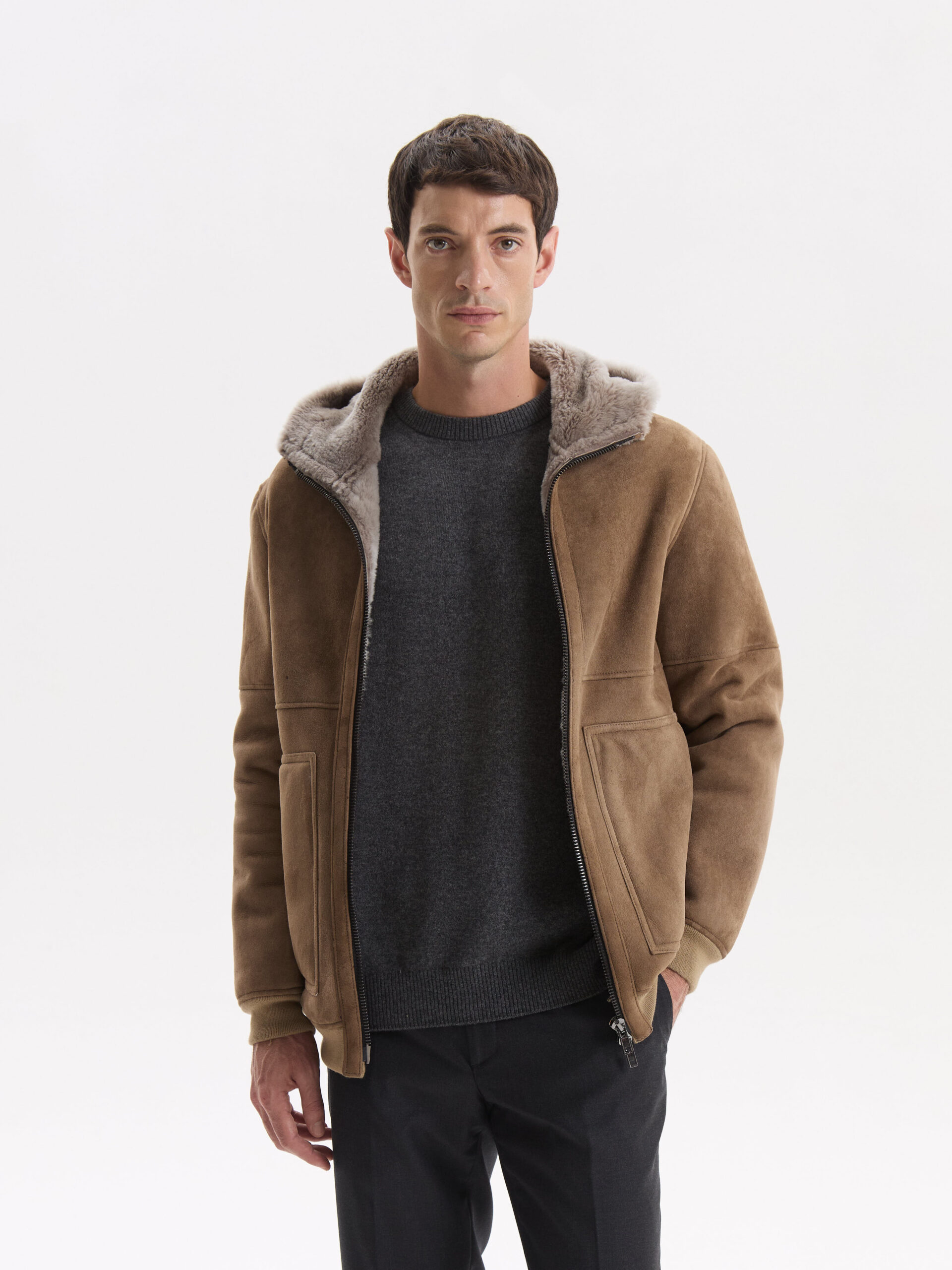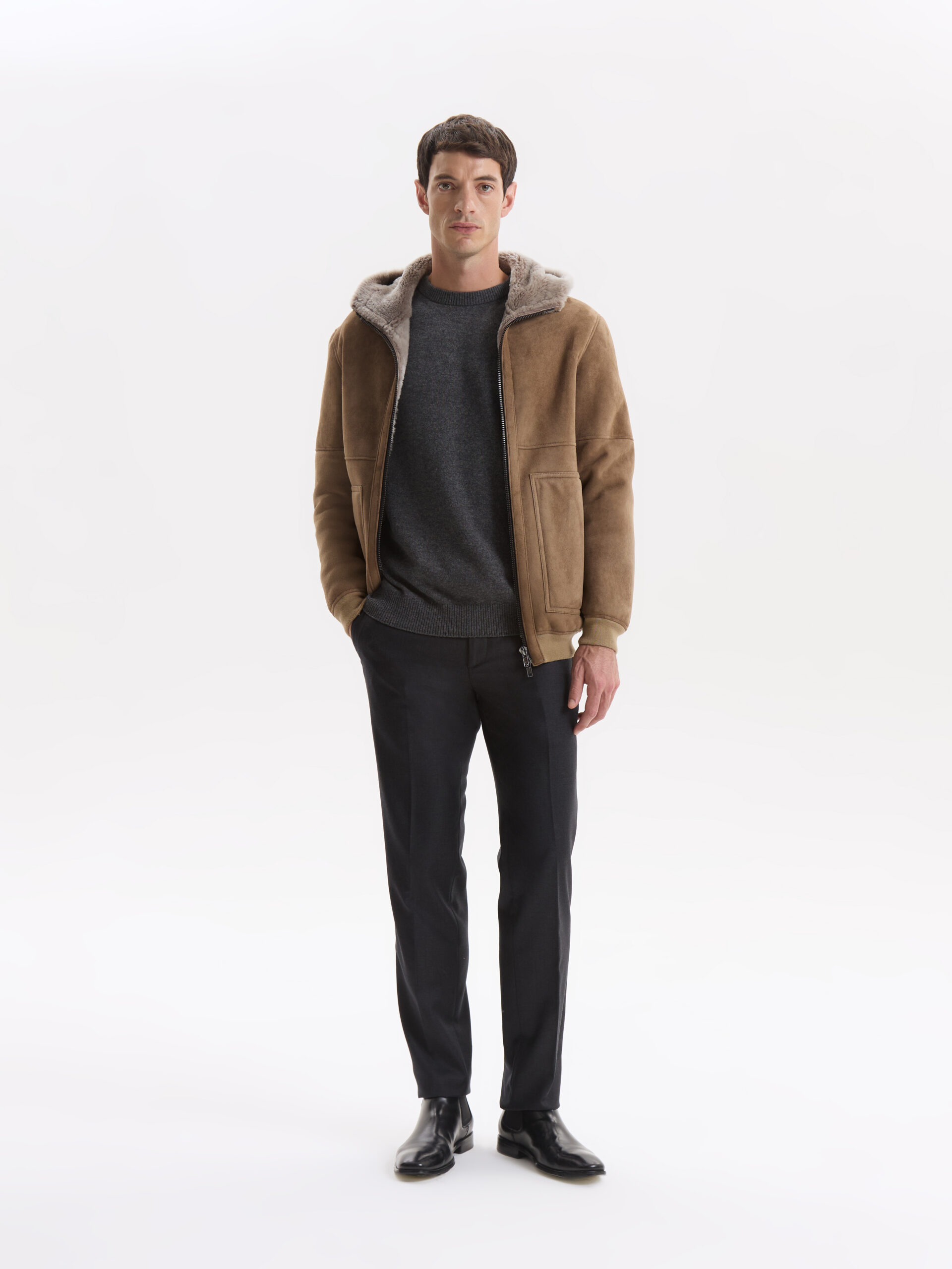 Confeccionado en 100% piel de oveja de alta calidad, con exterior en gamuza e interior en piel natural, este gamulán ofrece una suavidad excepcional y una calidez envolvente. Una pieza sofisticada, pensada para destacar en los días más fríos.
