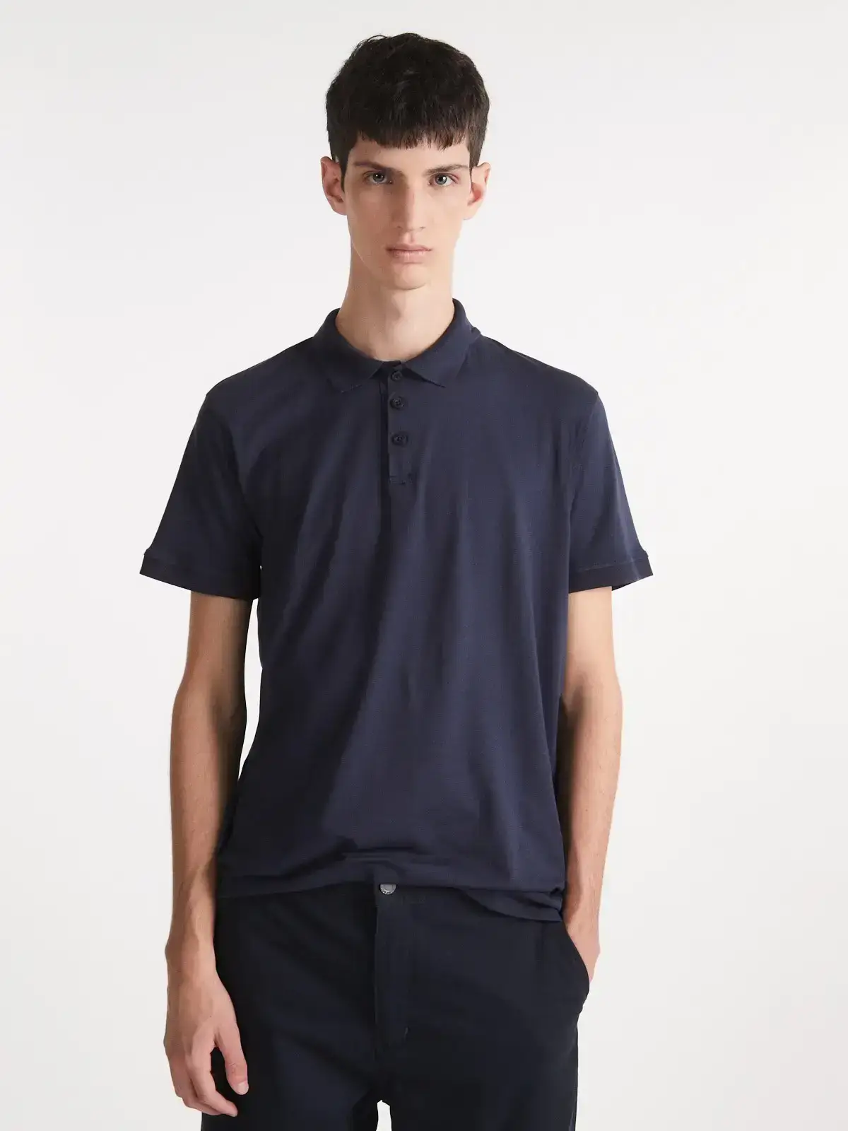Polo jersey con cuello rib con botones a tono.