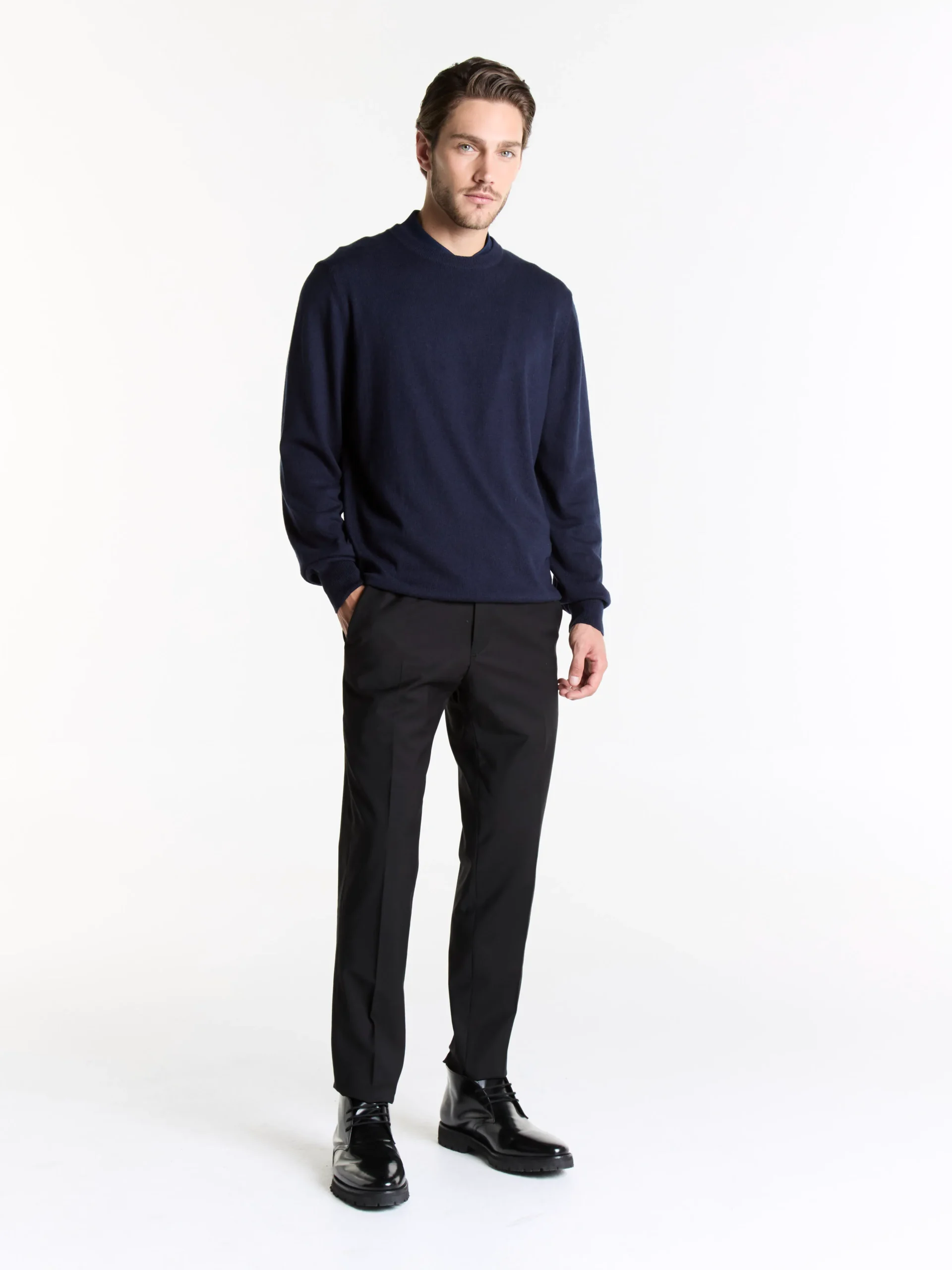 Tejido en una mezcla de fibras suaves, este sweater de cuello redondo envuelve el cuerpo con calidez y confort. Su diseño atemporal y acabado impecable elevan cualquier look con elegancia natural.