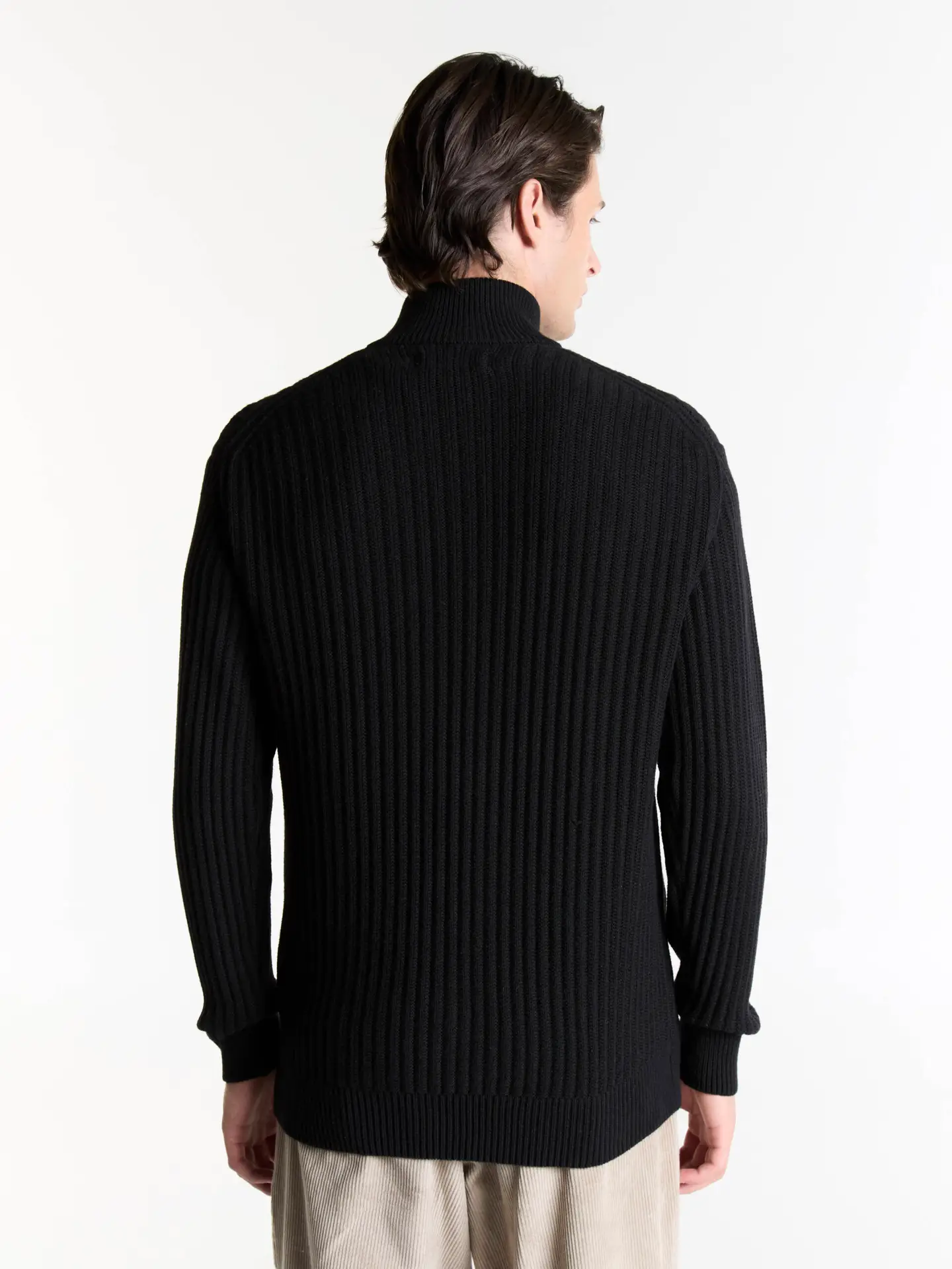 Confeccionado en un tejido de alta calidad, este sweater de medio cierre con textura acanalada combina calidez y sofisticación. Su diseño versátil se ajusta con comodidad, aportando un estilo elegante y moderno.