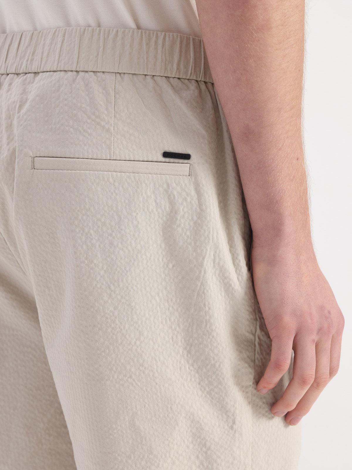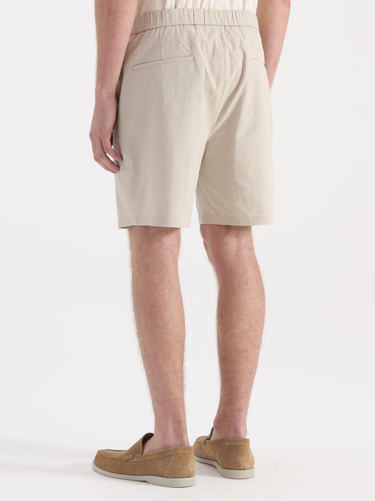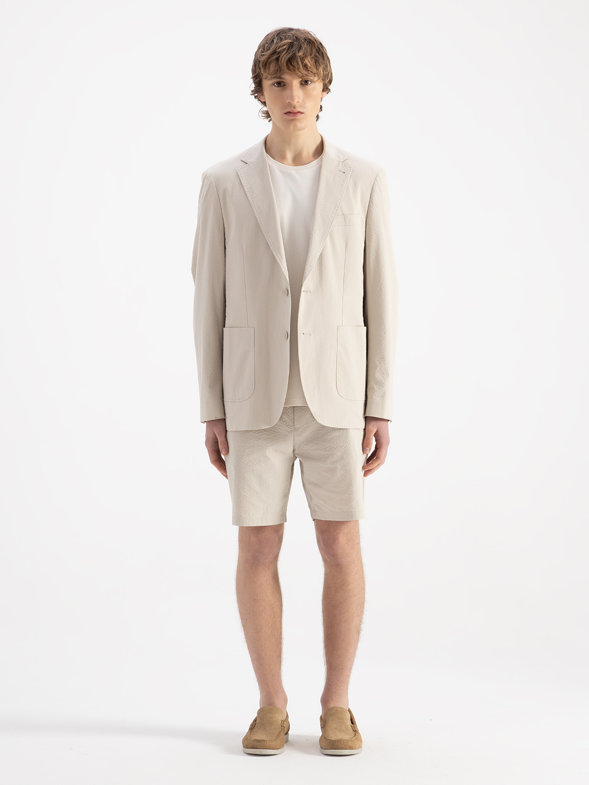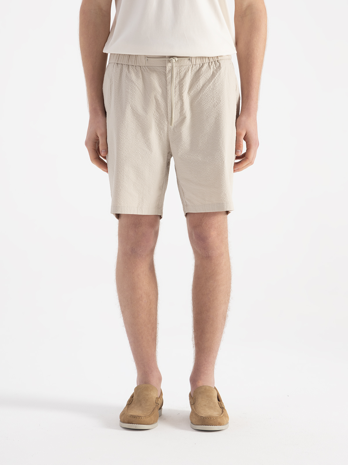 Fresca, liviana y con una textura unica, esta bermuda de seersucker es ideal para los días cálidos. Su diseño descontracturado y elegante ofrece comodidad sin resignar estilo.