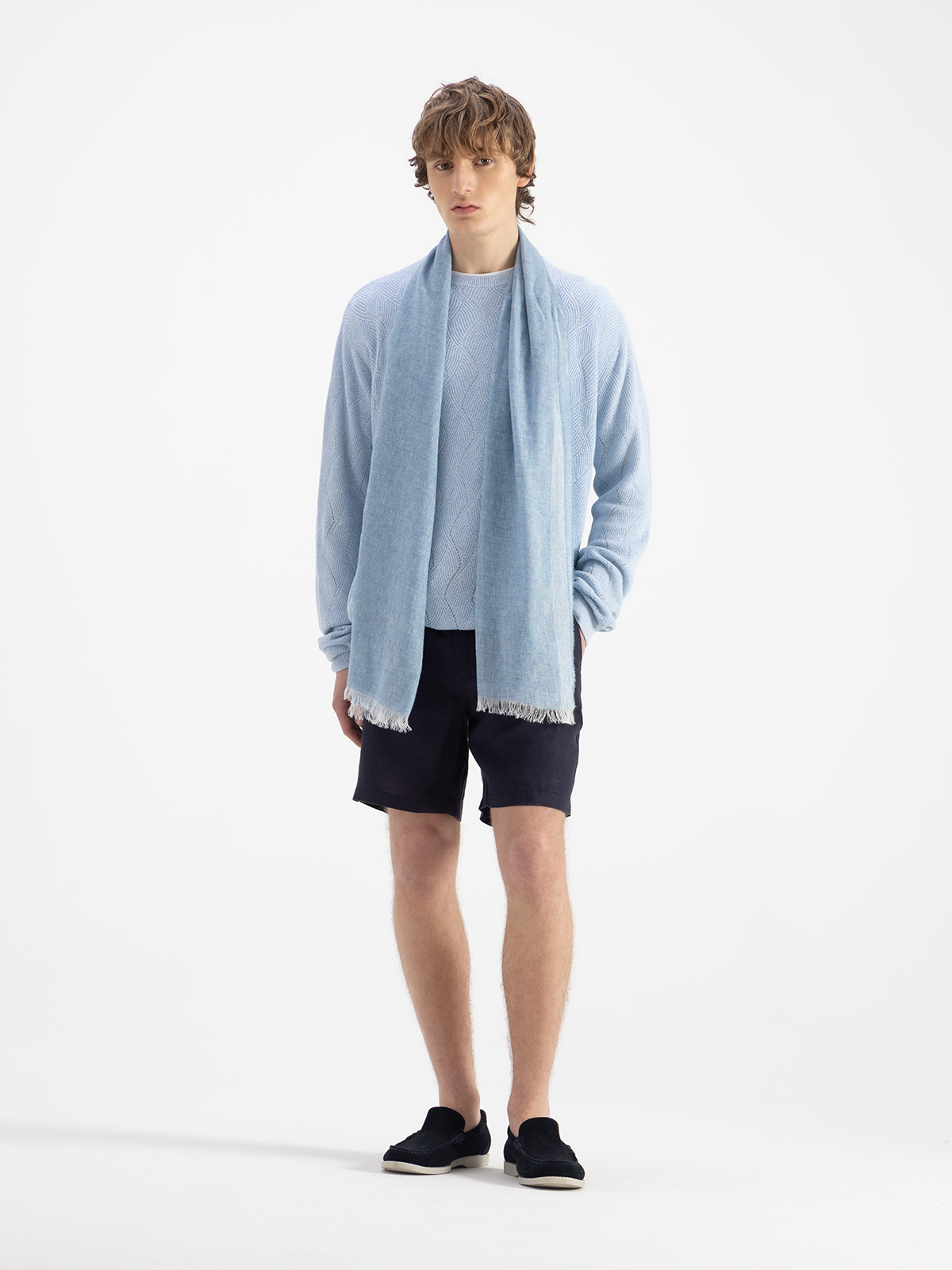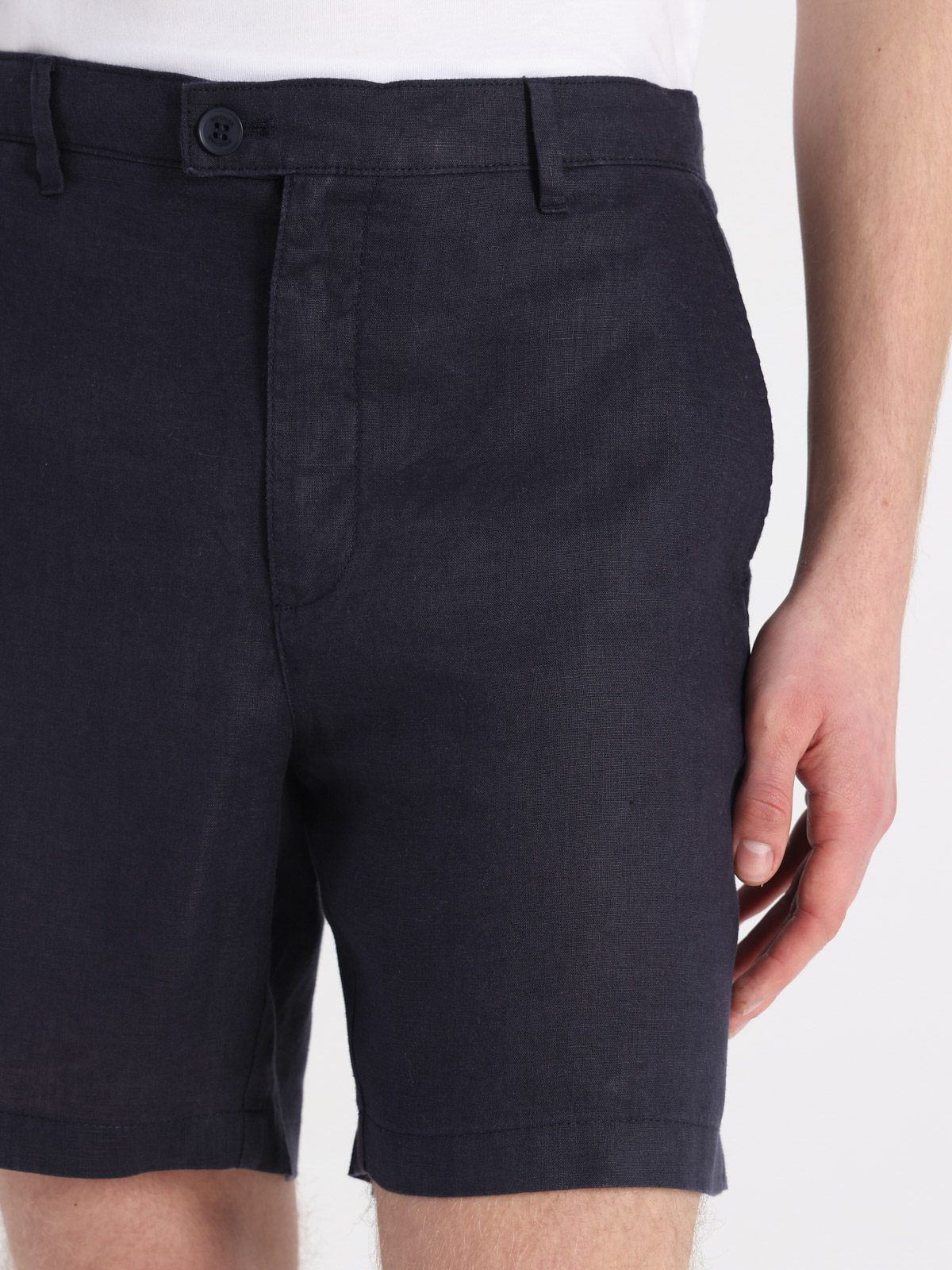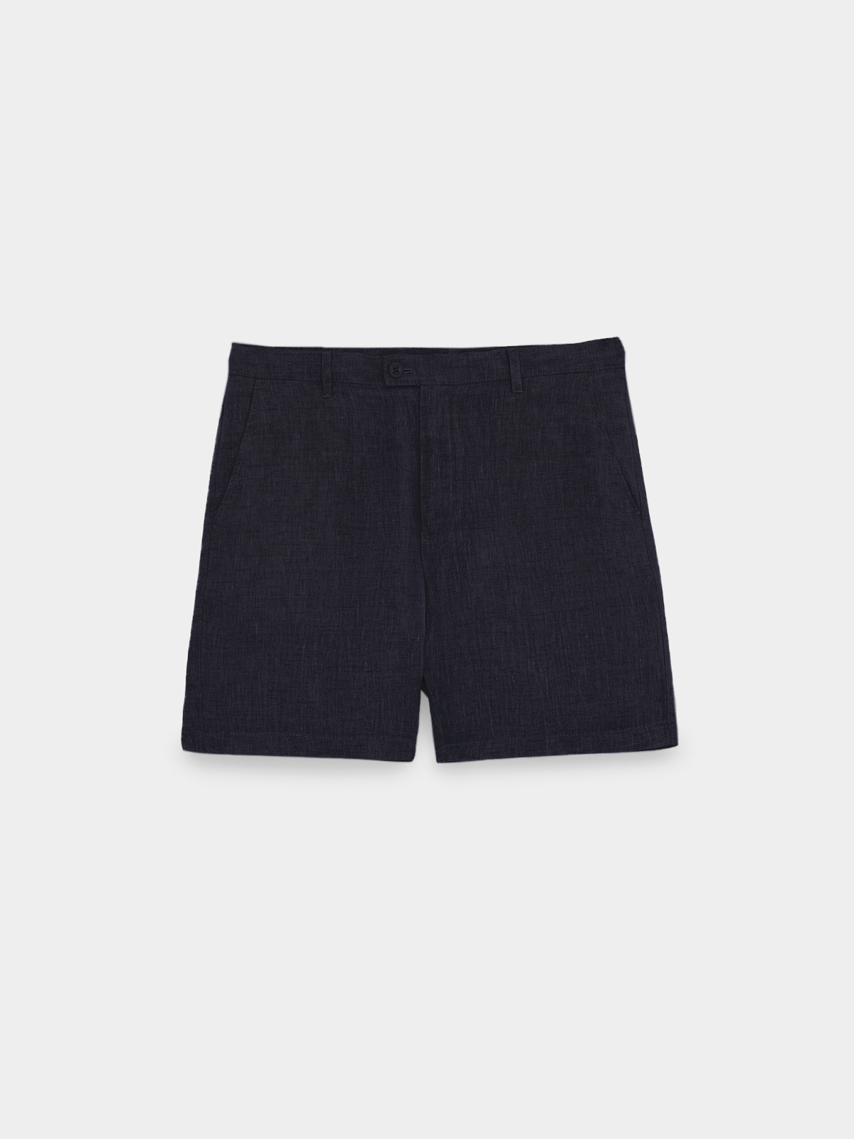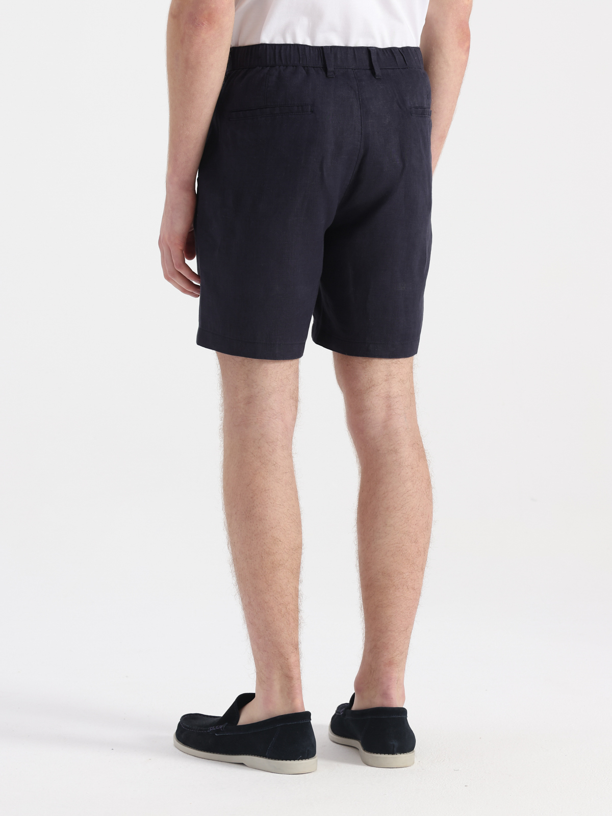 Esta bermuda de lino es perfecta para climas cálidos. Ideal para un look fresco y descontracturado. El cordón ajustable en la cintura aporta funcionalidad y estilo casual, completando una prenda clave para el verano.