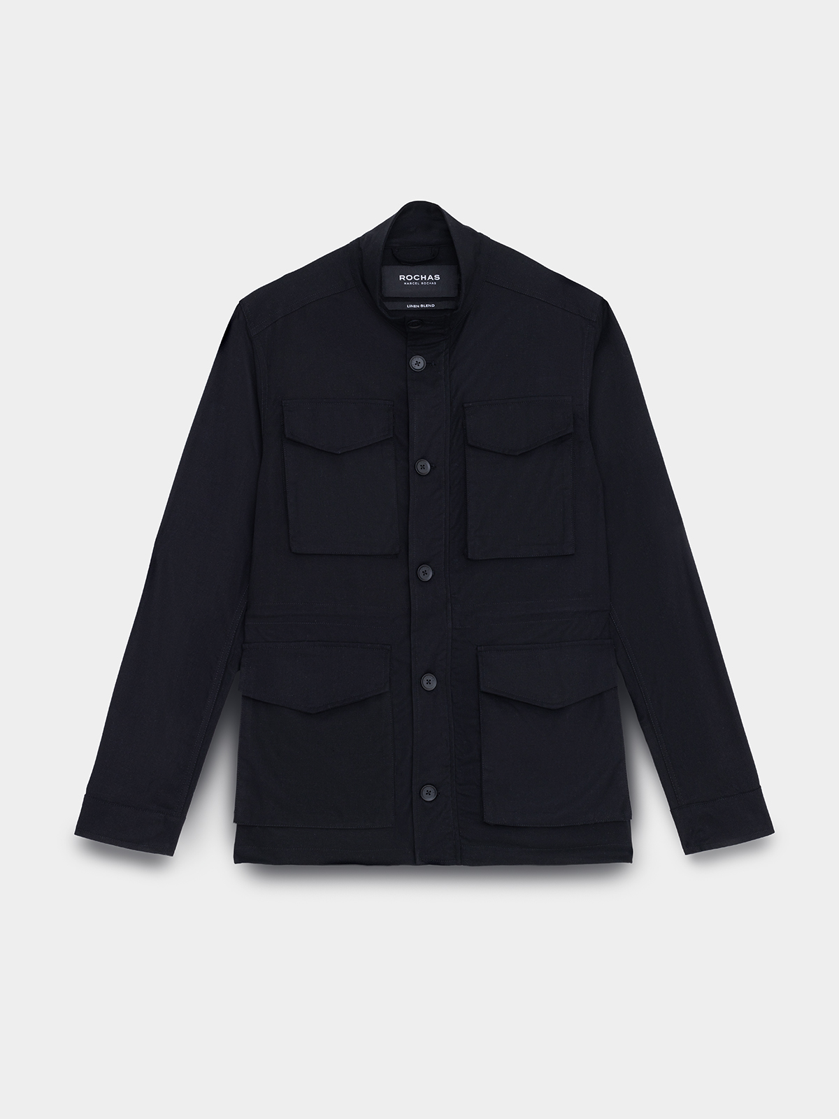 Esta cazadora en mezcla de lino y algodón combina frescura y estructura con un estilo relajado. Su diseño versátil la convierte en una prenda clave para la temporada.