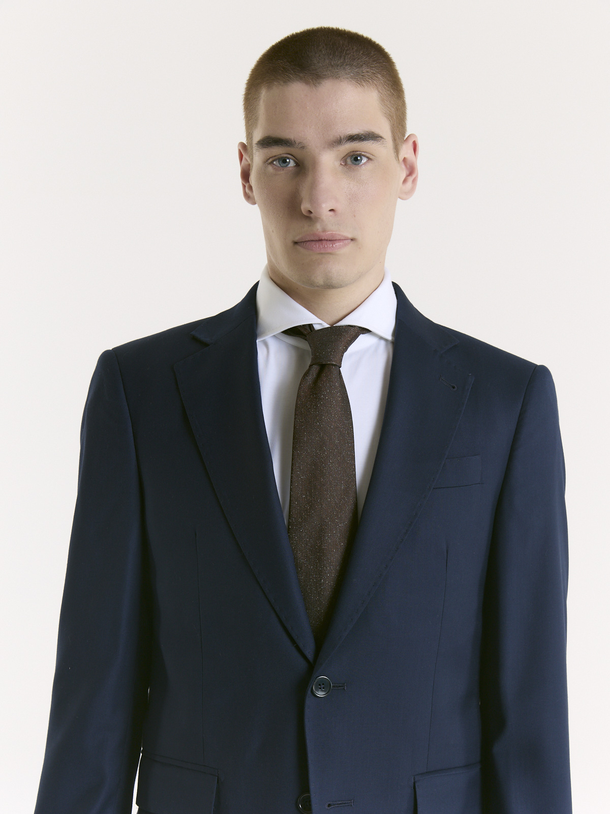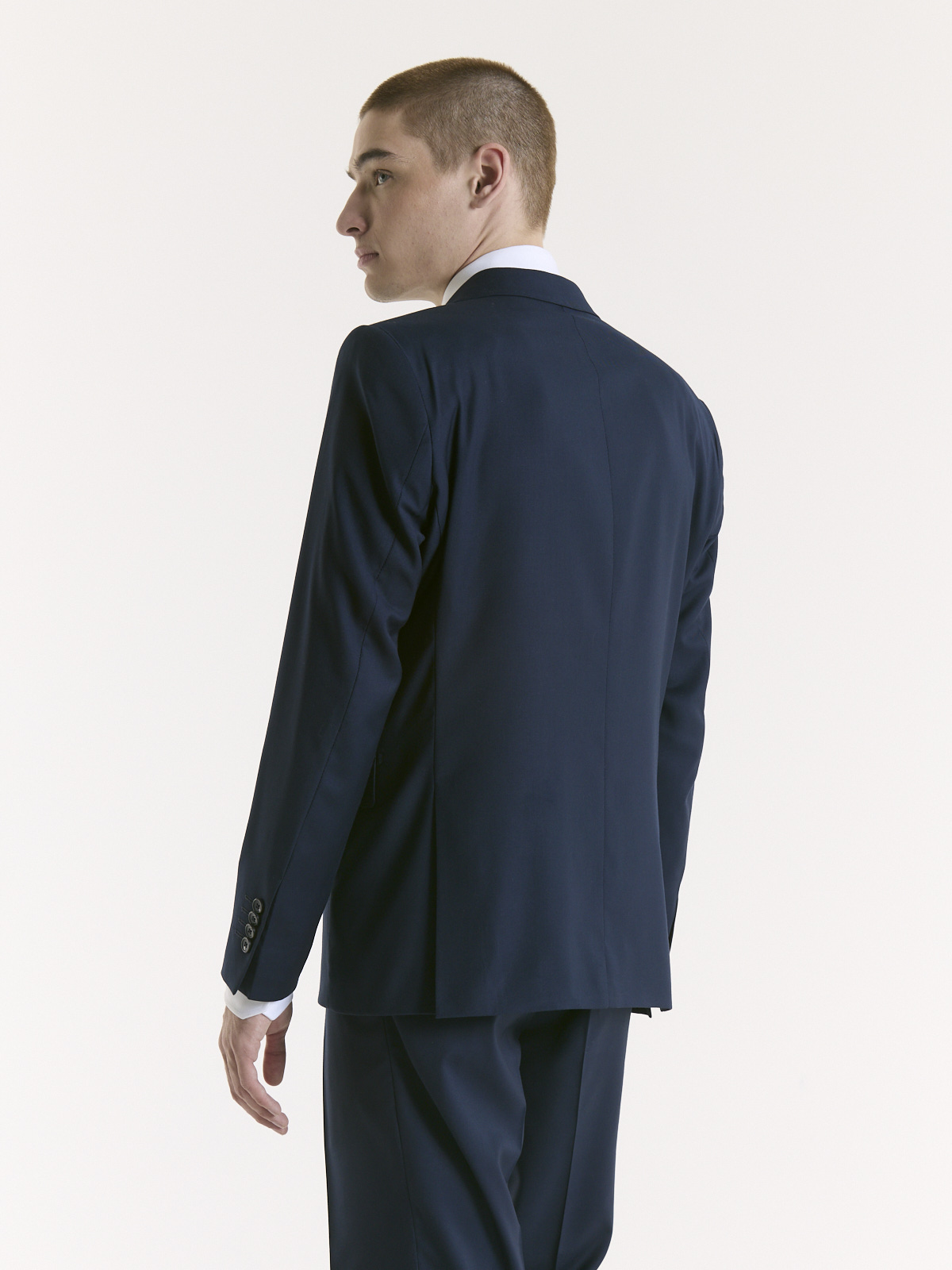 Ambo de dos piezas confeccionado en viscosa y fiber blend, un tejido que aporta resistencia, confort y una caída impecable. De diseño clásico y versátil, es una elección ideal para un look distinguido.