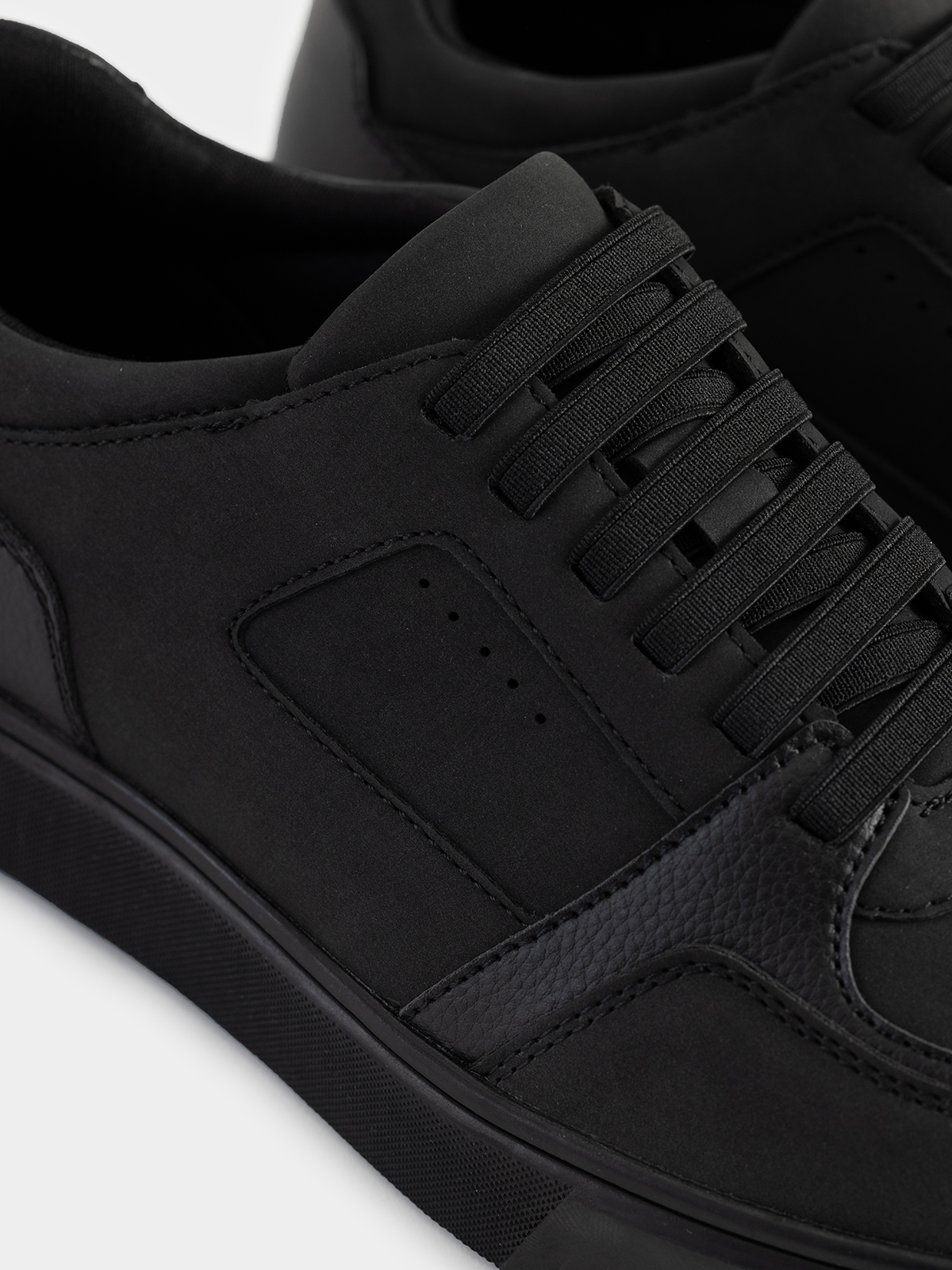 Zapatillas que combinan materiales lisos con un delicado acabado aterciopelado. Los cordones elásticos suman practicidad y un toque contemporáneo que garantiza comodidad en cada uso.