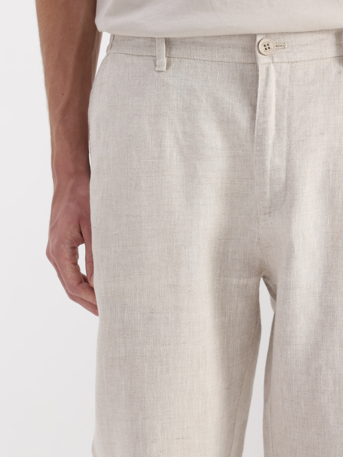 Con un diseño relajado y moderno, este pantalón de lino es ideal para un look informal con estilo. Se adapta con naturalidad a los días cálidos sin perder presencia. El cordón ajustable en la cintura suma practicidad y refuerza su estilo casual.